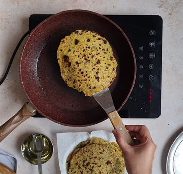 There is a wholesomeness about Thepla that makes it a favourite in our home, whether they're freshly made or a day old. Excellent for using up any left over veg or yesterdays rice, something to pack for a road trip or make for a weekend brunch.