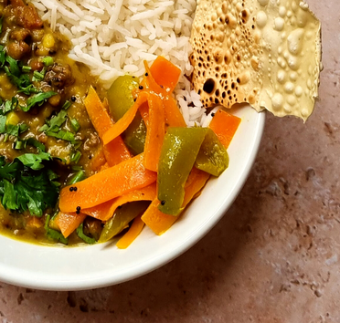 It's a modest side that deserves its own space on the plate, often eaten with daal and rice but also great with breakfast and a cup of hot chai.